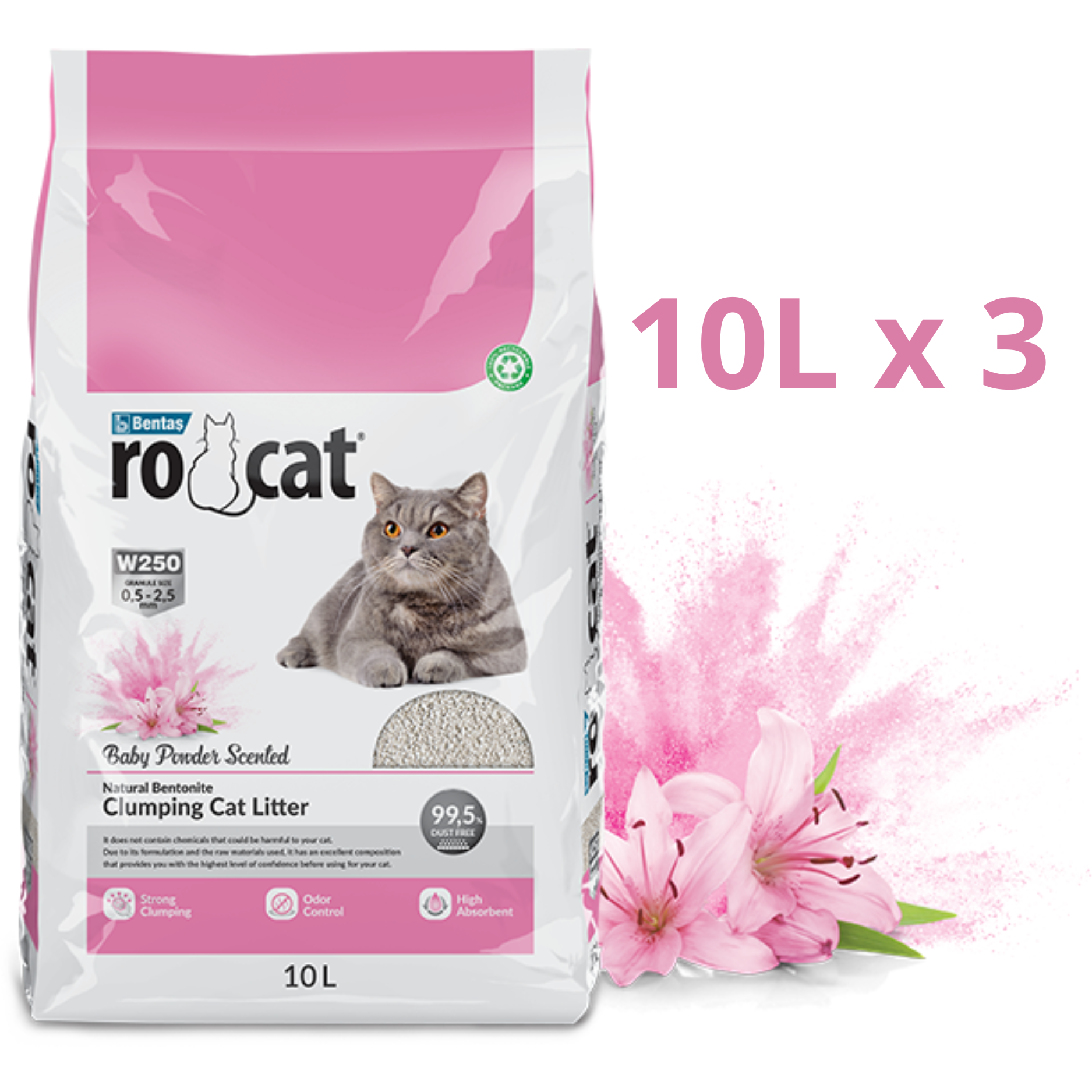 (3PCS) Rocat Baby Powder Cat Litter 10L